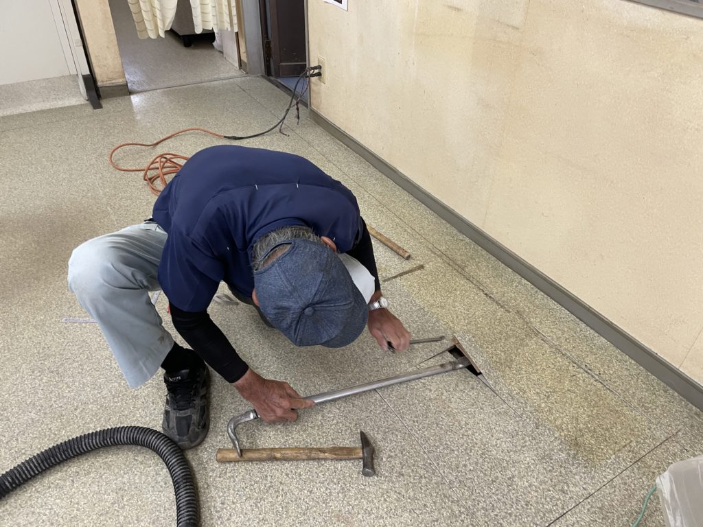 先日、建設業の事務所の床がダワダワしてるから張り替えてほしい。という連絡をいただき、作業してきました!