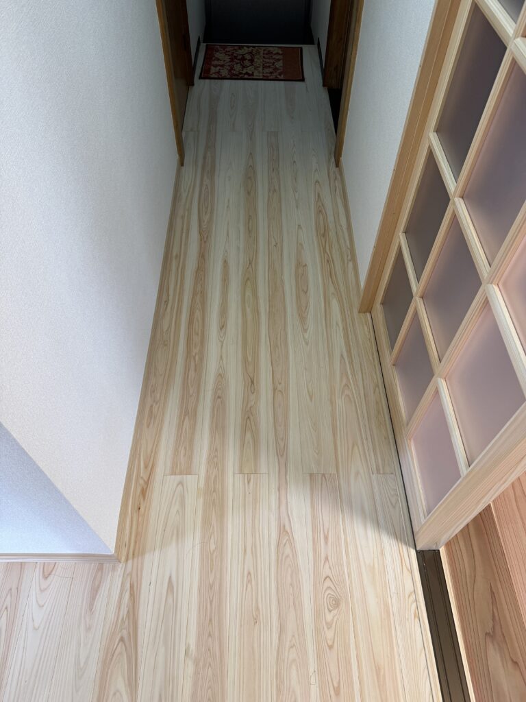 床も無垢の杉板で貼り直して、足元も優しい仕上がりになっています。