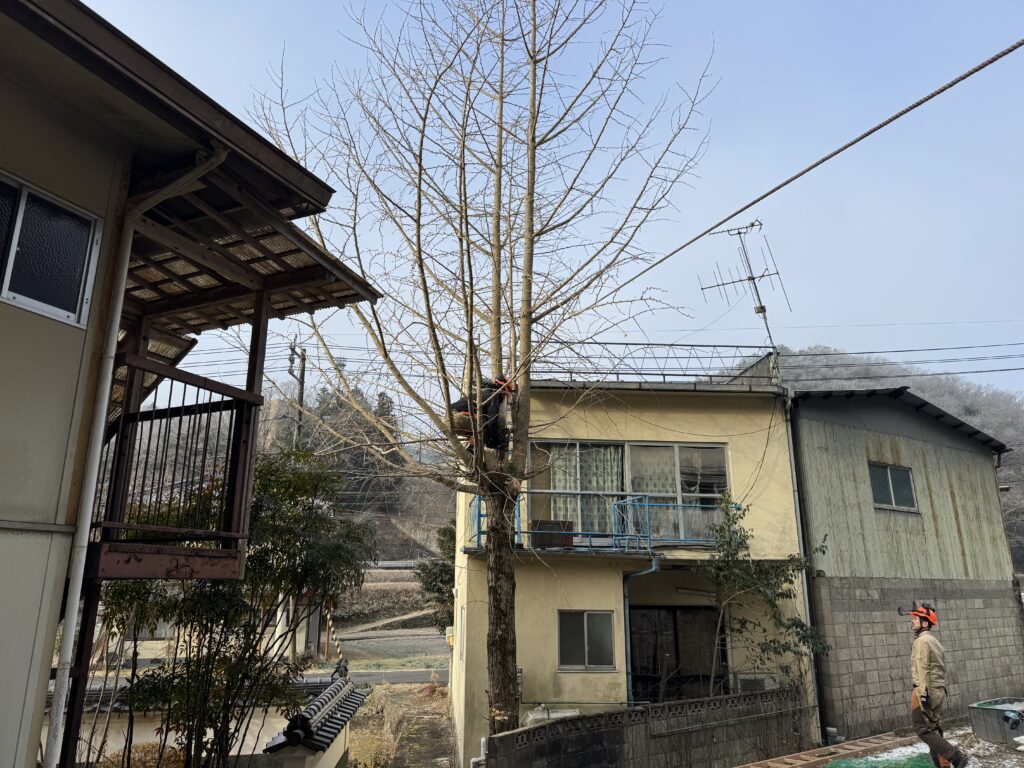 庭木といっても、もう住まれていない空き家にある、大きくなりすぎたイチョウの木の伐採です。